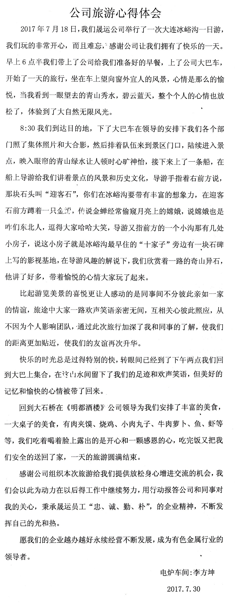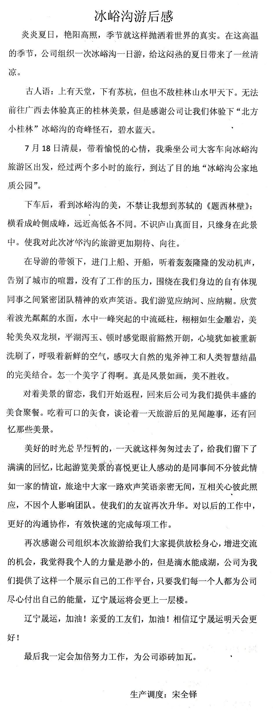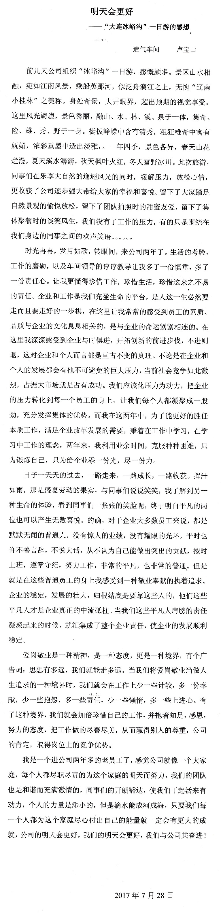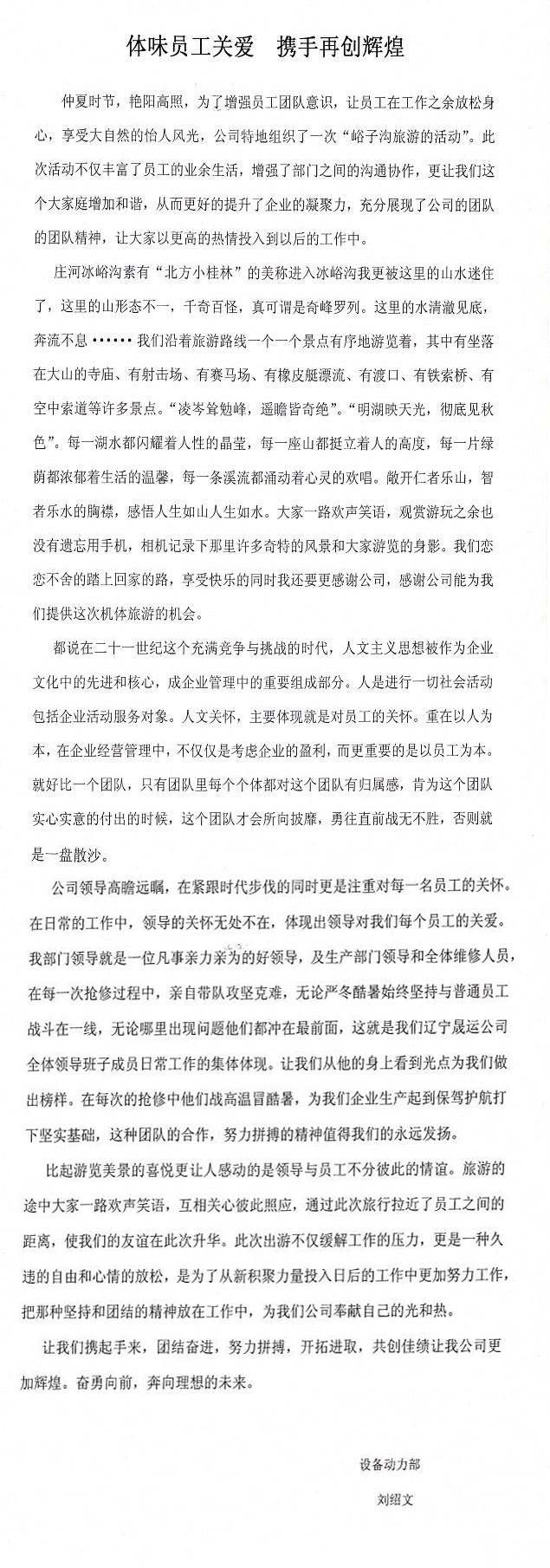 為進一步弘揚了公司企業(yè)文化精神理念,促進加深員工對企業(yè)文化的理解、認同,進而為公司的發(fā)展做出新的、更大的貢獻。2017年7月21日-8月7日,公司以夏季“冰峪溝”出游為契機,在全公司范圍內開展第二屆“企業(yè)文化故事”有獎征文活動。